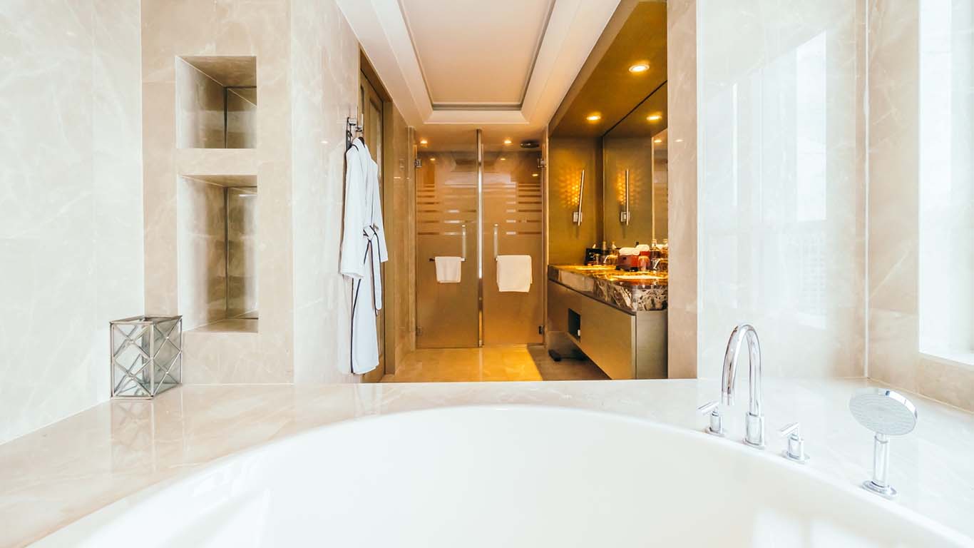 There are freestanding bathtubs which provide a touch of class while being both stylish and comfortable. You could also add a touch of timeless value with premium materials such as marble, quartz or solid surfaces to ensure top-tier material endurance.